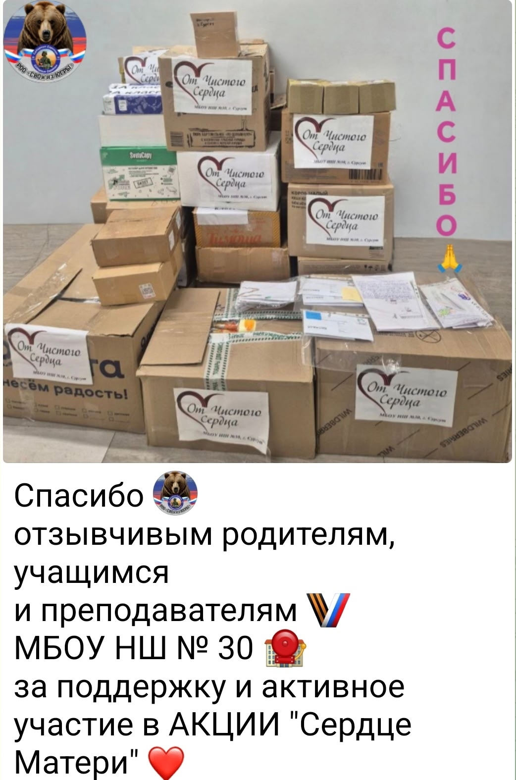 Все посылки переданы в РОО "СВОи из Югры" СеVерные Zарницы_86.